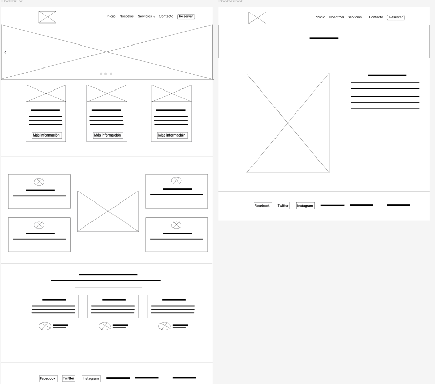 A clean, structured wireframe that outlines the core layout and user flow of the barbershop website.